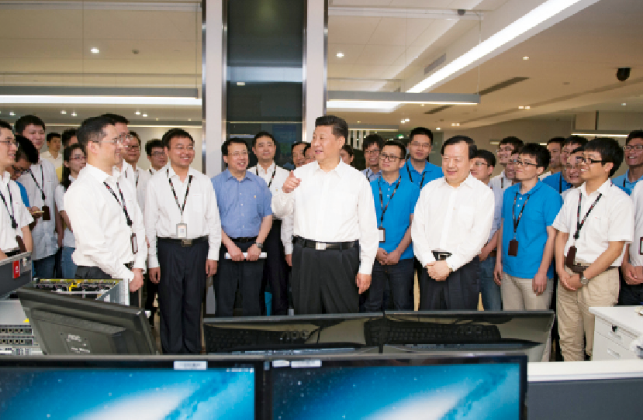 2015年5月26日下午,習(xí)近平總書記蒞臨位于杭州的中電??悼毓晒竞?低暱疾煺{(diào)研。(圖片來源:新華社)