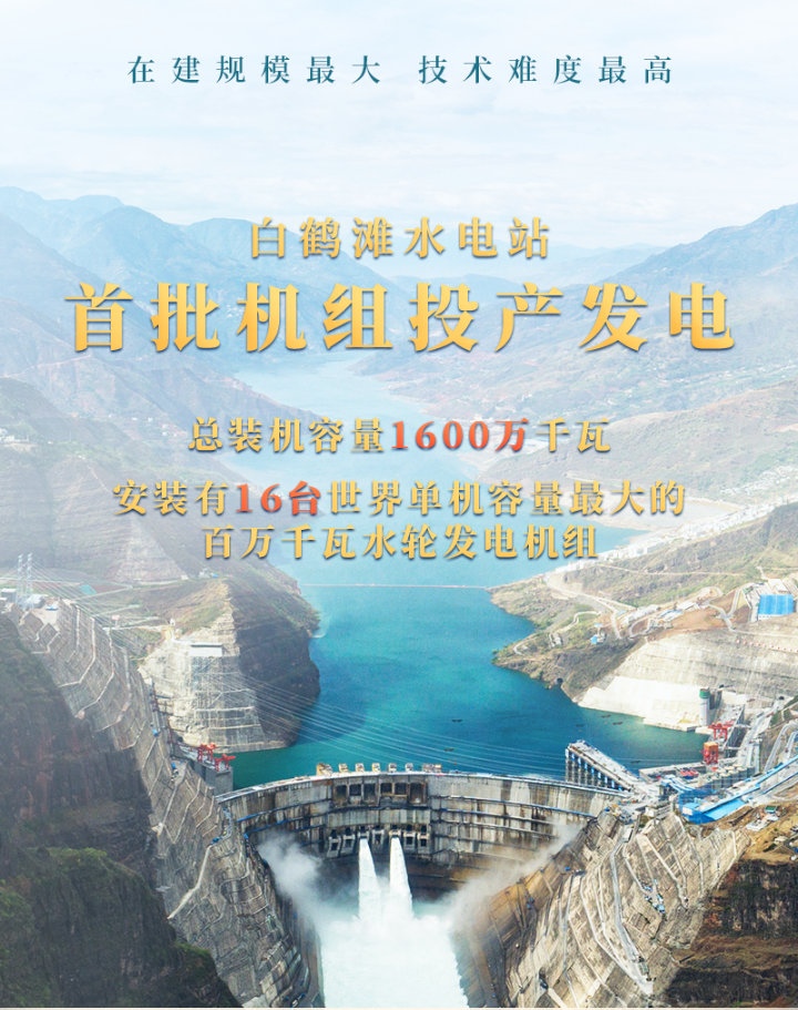 6月28日,金沙江白鶴灘水電站首批機(jī)組安全準(zhǔn)點投產(chǎn)發(fā)電。中共中央總書記、國家主席、中央軍委主席習(xí)近平發(fā)來賀信,表示熱烈的祝賀。