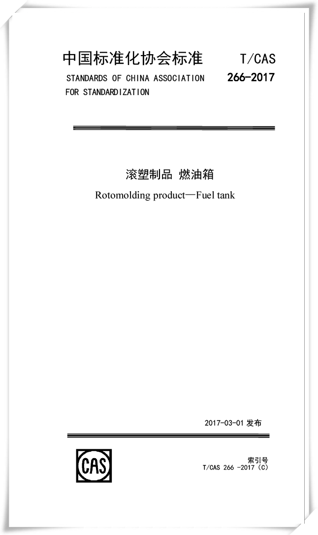 中國(guó)標(biāo)準(zhǔn)化協(xié)會(huì)標(biāo)準(zhǔn)《滾塑制品 燃油箱》正式發(fā)布,瑞堂科技總經(jīng)理溫原是該標(biāo)準(zhǔn)的主要起草人。此標(biāo)準(zhǔn)的索引號(hào)為T/CAS 266—2017。