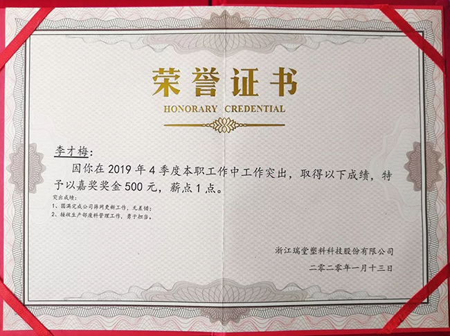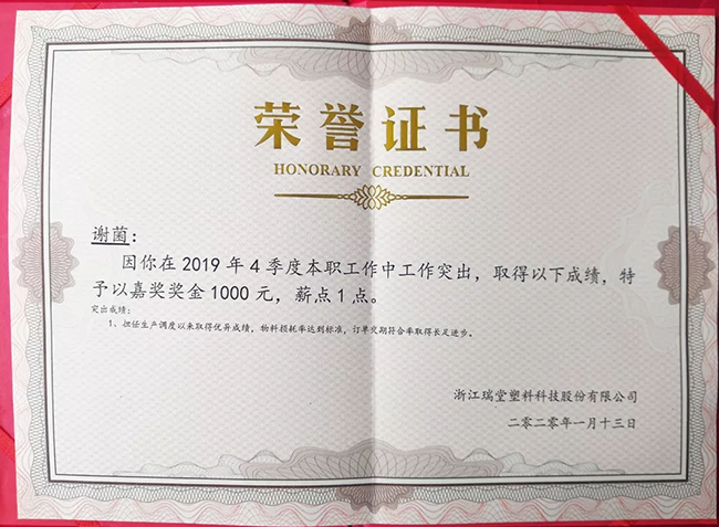 瑞堂科技19年第四季度優(yōu)秀員工獲獎名單如下:
